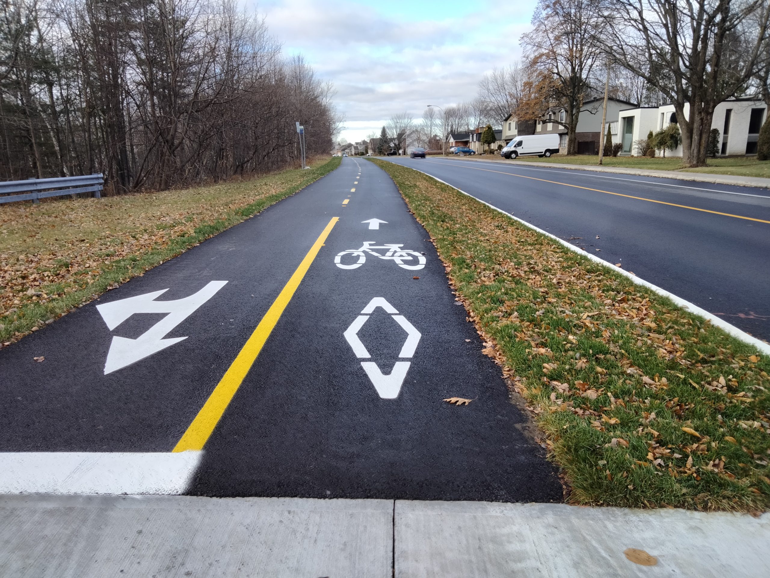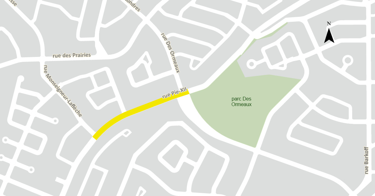 À l’automne 2024, des travaux visant l’aménagement d’une nouvelle piste cyclable sur la rue Pie-XII, entre les rues Monseigneur-Laflèche et Des Ormeaux, ont été réalisés.