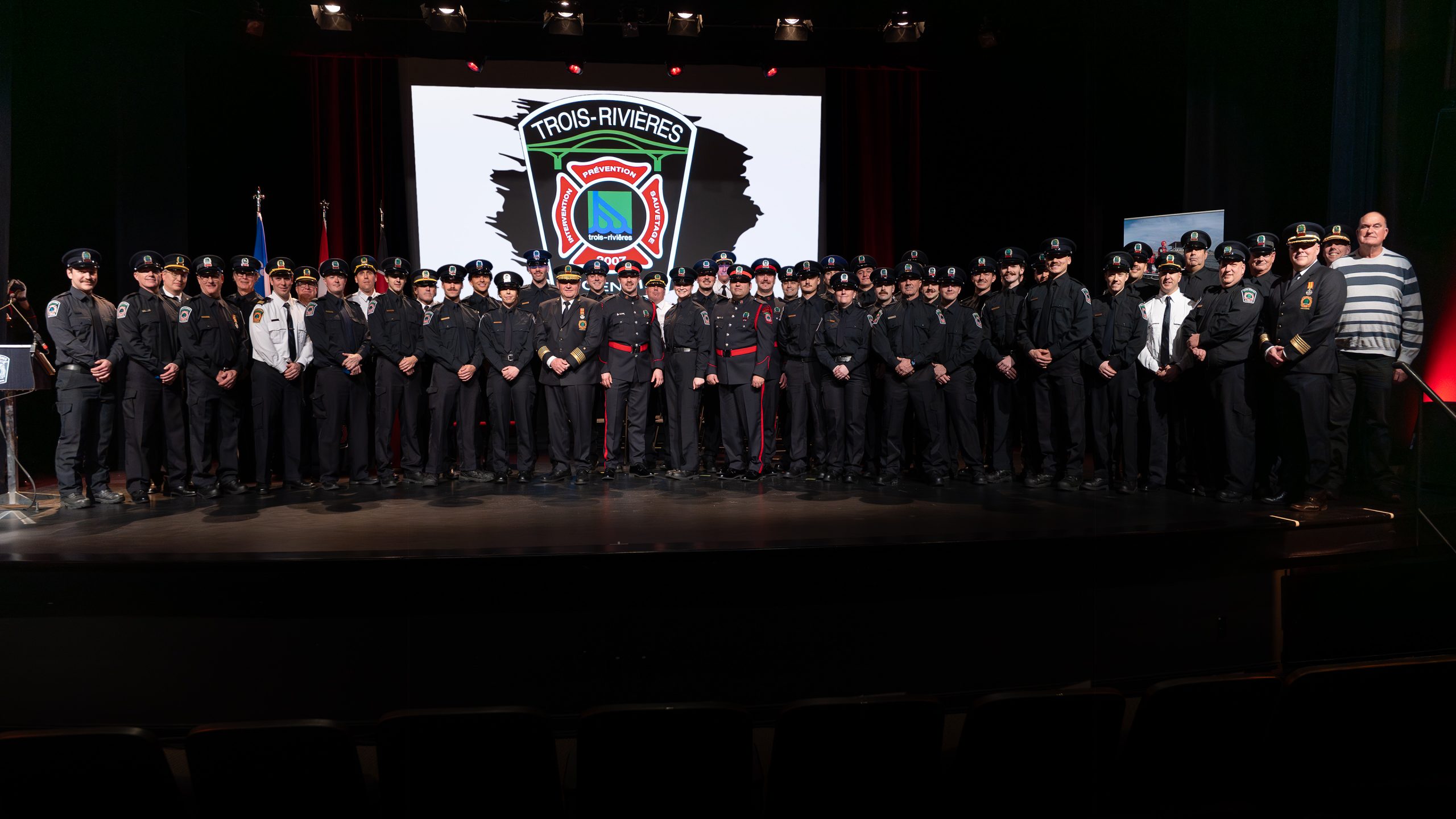 La Ville de Trois-Rivières a tenu une cérémonie honorifique au Théâtre du Cégep afin de souligner le dévouement de ses pompières et pompiers.
