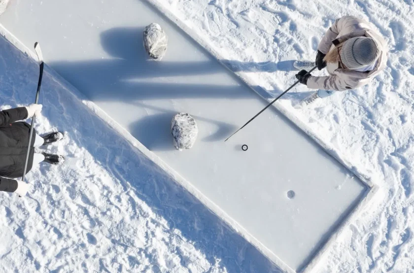 Ce parcours de neuf trous glacés, à jouer à l’aide de bâtons de hockey, propose une expérience ludique et familiale accessible à toutes et à tous.